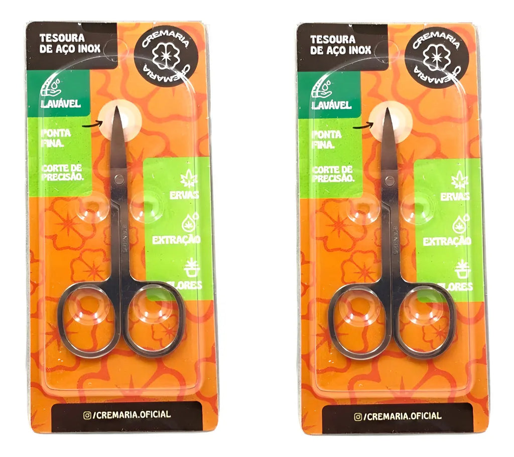 Kit 2 Tesouras Cremaria Aço Inox 8.5cm Ponta Redonda e Curvada