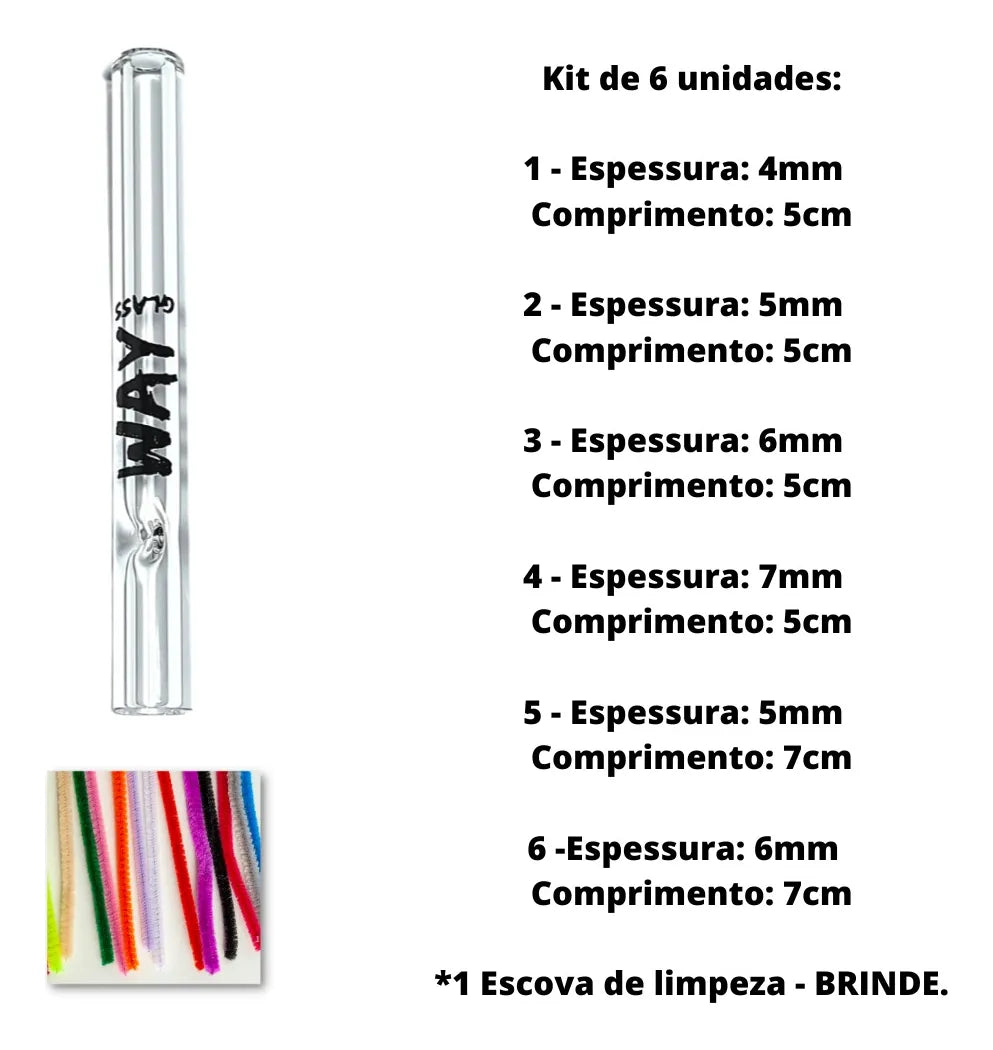 Kit 6 Piteiras De Vidro Diversos Tamanhos + Way Glass